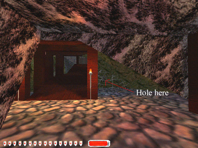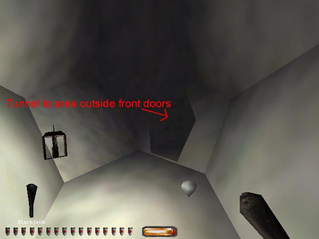 Go up the stairs in the big front foyer, turn left at the top and look for the collapsed part of the wall.